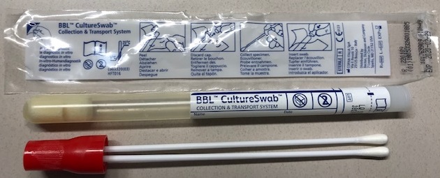 Instructions for the collection of a genital swab for the detection of a group B streptococcus GBS 1. Research indicates that screening tests taken late in pregnancy are more reliable. Remove swab from packaging.