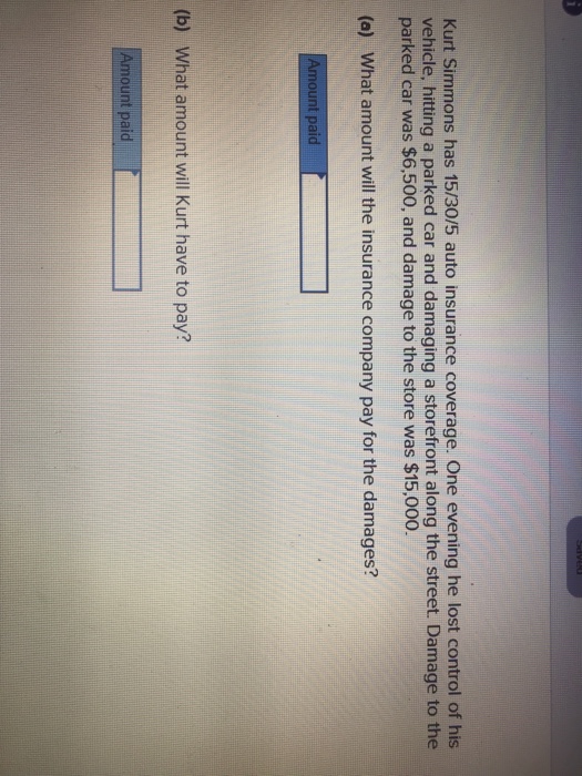 Solved Kurt Simmons Has 15 30 5 Auto Insurance Coverage Chegg Com